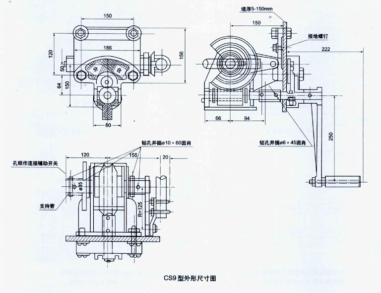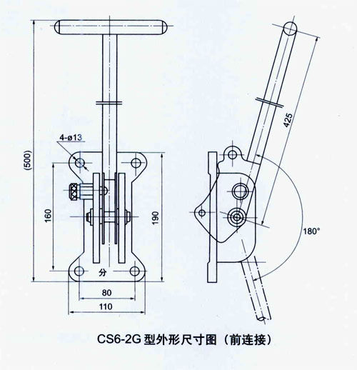 CS型手動(dòng)機(jī)構(gòu)由底座、操作手柄及邊板等組成。