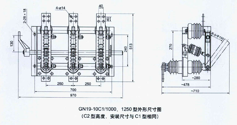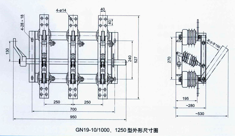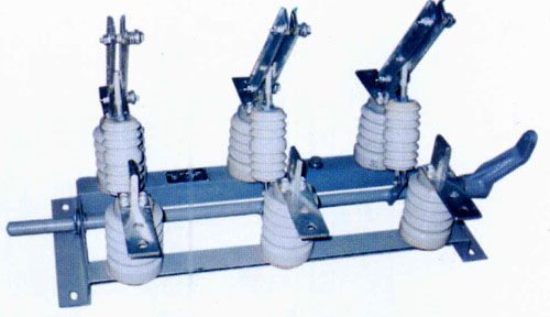 GN19-10型戶內(nèi)三相高壓隔離開關(guān)由底座、支柱瓷絕緣子、操作瓷絕緣子和導(dǎo)電部分組成。