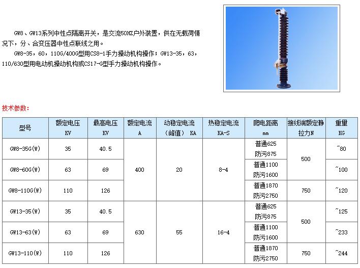 GW8、GW13系列中性點(diǎn)隔離開關(guān)